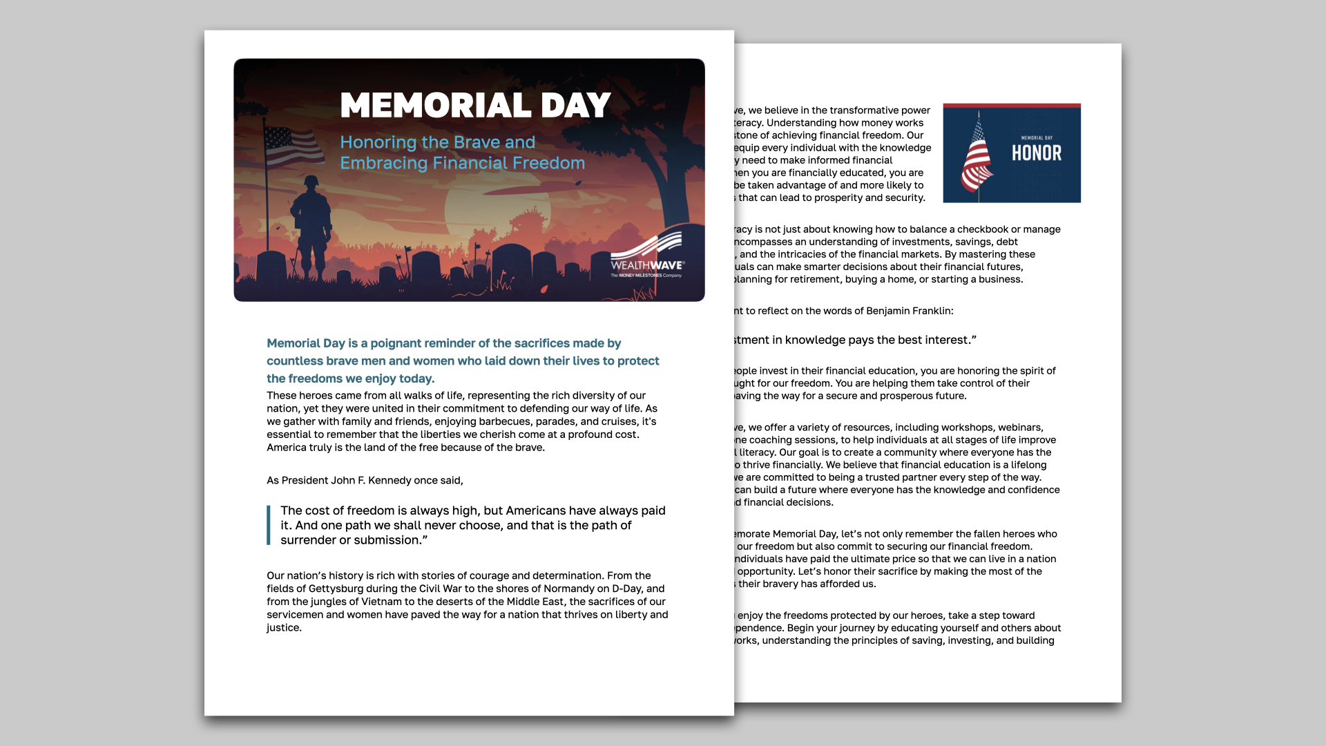 As we commemorate Memorial Day, let’s not only remember the fallen heroes who have secured our freedom but also commit to securing our financial freedom. These brave individuals have paid the ultimate price so that we can live in a nation of liberty and opportunity. Let’s honor their sacrifice by making the most of the opportunities their bravery has afforded us.