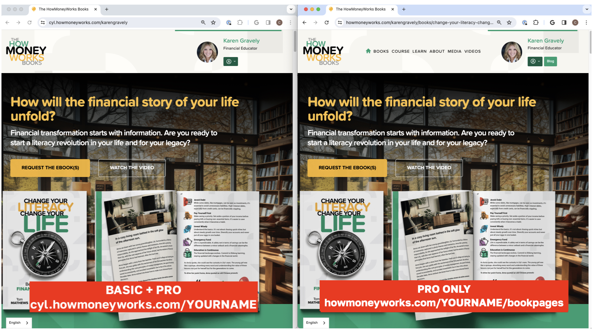 cyl.howmoneyworks.com/YOURNAME. This version is accessible to all accounts, both BASIC and PRO.howmoneyworks.com/YOURNAME/bookpages/change-your-literacy-change-your-life. This full version is part of the paid PRO plan, offering additional content and all of our books in the HowMoneyWorks Book series.