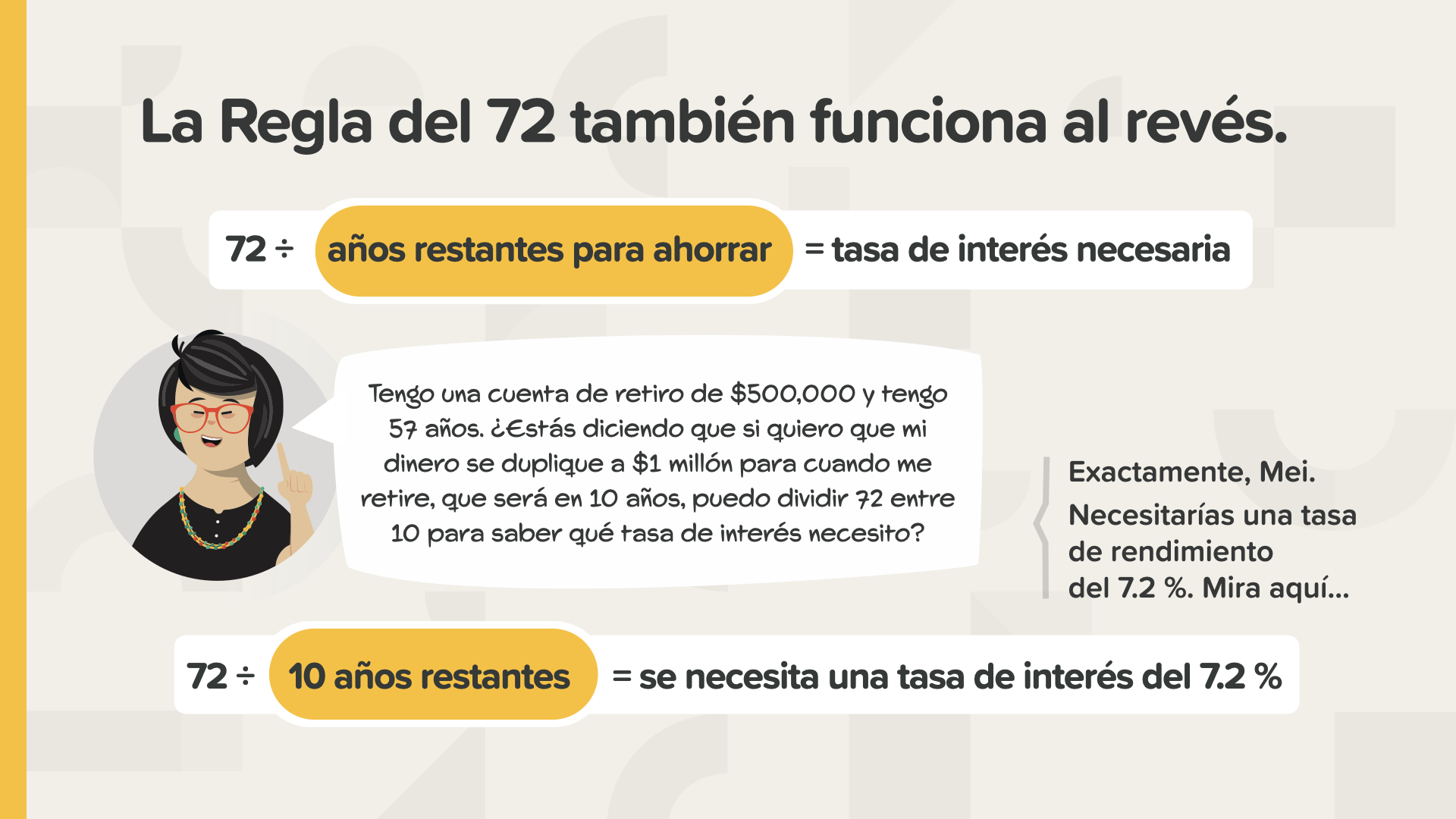 También puedes usar esto para calcular qué rendimiento necesitas para alcanzar una meta de ahorro o cuánto te costará un préstamo.