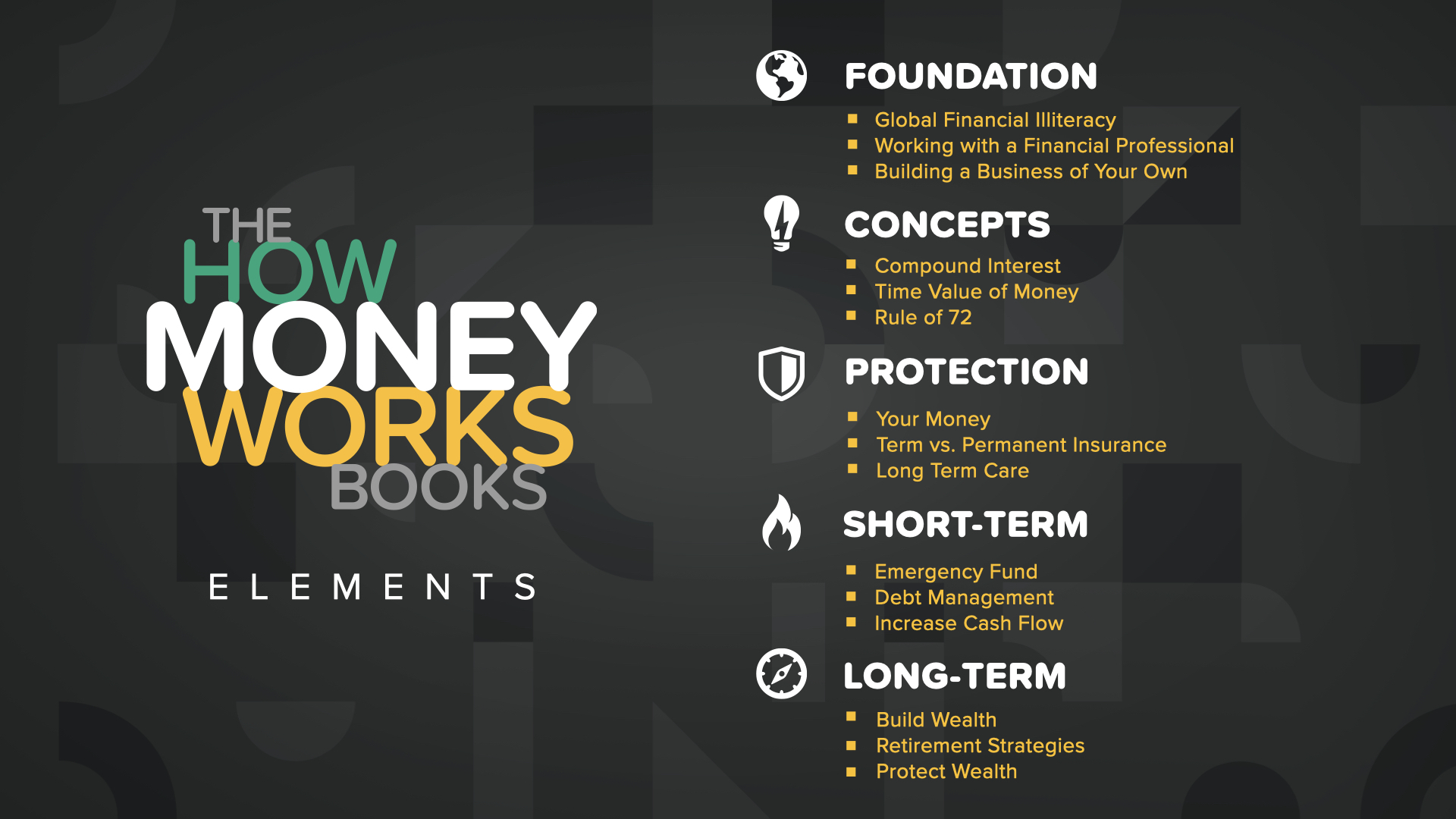 It’s great to have you with us here today. My name is _______________. I’ll be your financial educator for the next half hour. I’d like to welcome you to the HowMoneyWorks Book ELEMENTS educational series. The course is based on the groundbreaking book, HowMoneyWorks: Stop Being a Sucker—now with hundreds of thousands of copies in print.