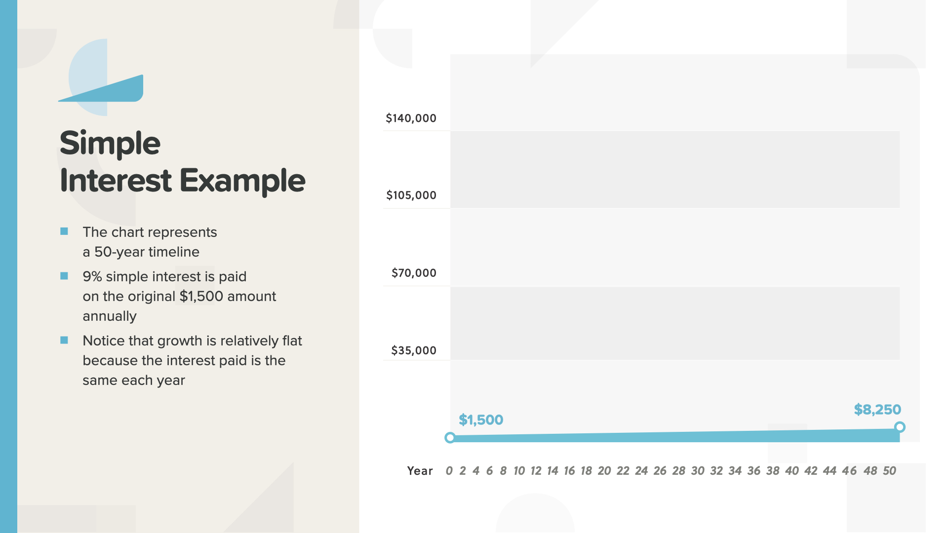The difference between simple and compound interest is substantial. One stays the same, and one grows and grows.