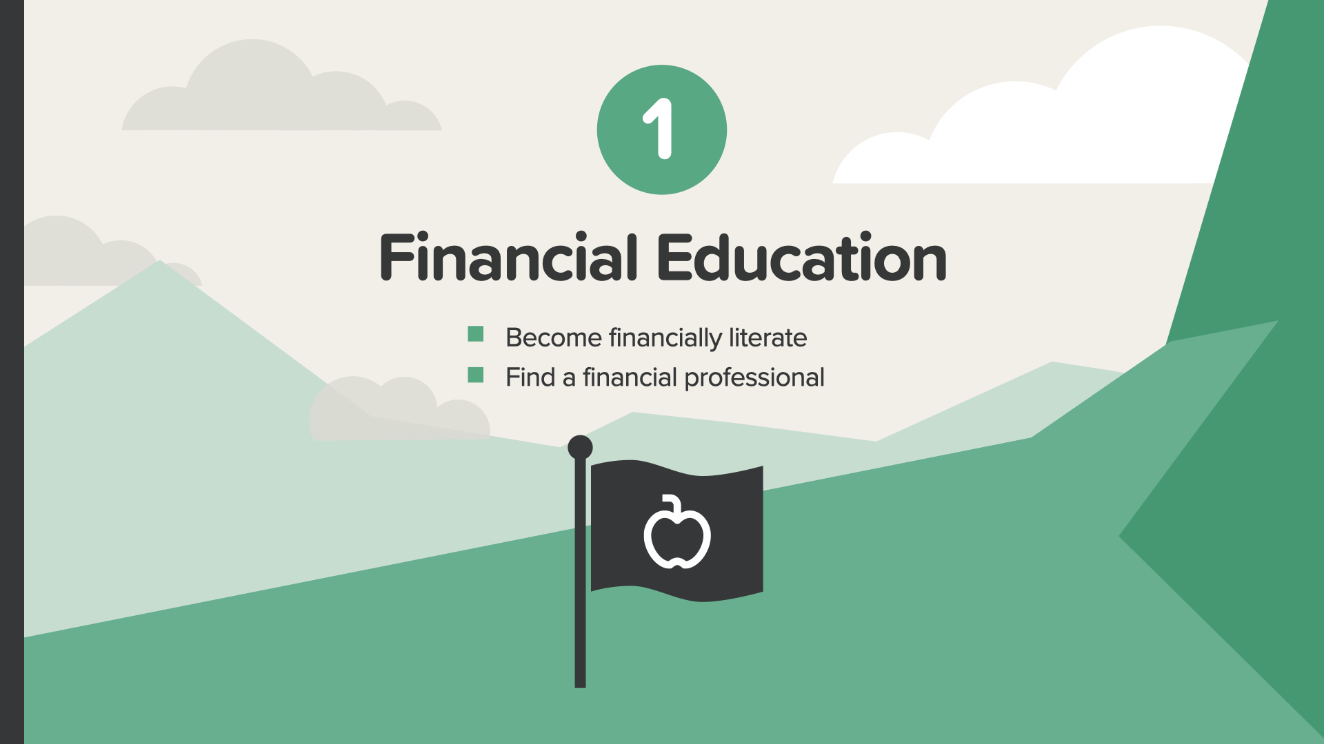 The first Milestone is one you’re already on your way to completing. You’ve begun Milestone #1—Financial Education—with the first part of this session. You’re becoming more financially ready with each slide we cover. Also, remember a financial professional is the best person to turn to for questions on details. I can discuss them with you if you don’t have one or need help choosing one. Here’s another way to say it…
