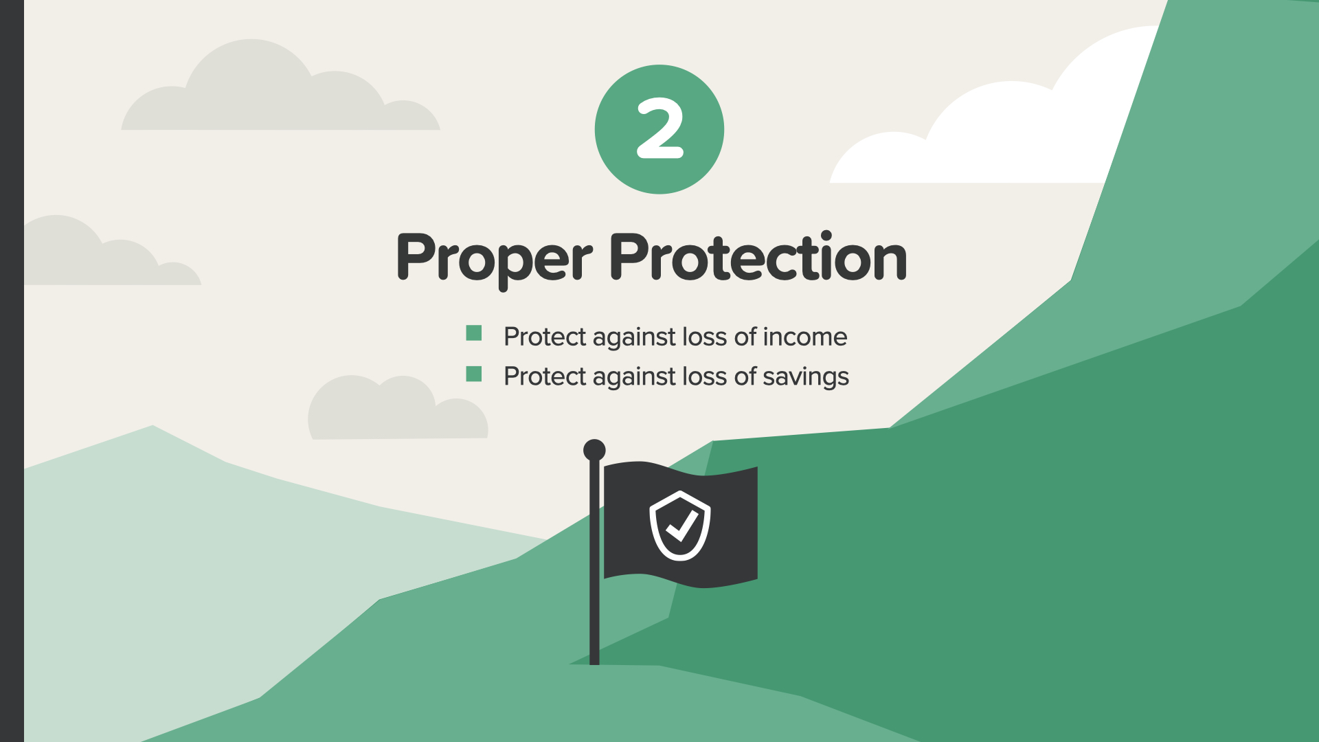 Proper Protection is Milestone #2 for an important reason. You need to protect yourself and your family from a possible future loss of income or savings before you begin the rest of this journey. If you were to die prematurely, your family could be left without your income in addition to being without you. Your current savings might not be enough to take care of them.