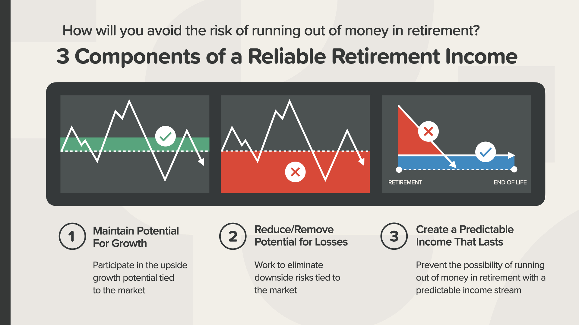 • Create a Predictable Income That Lasts and prevent the possibility of running out of money in retirement with an income stream you can count on