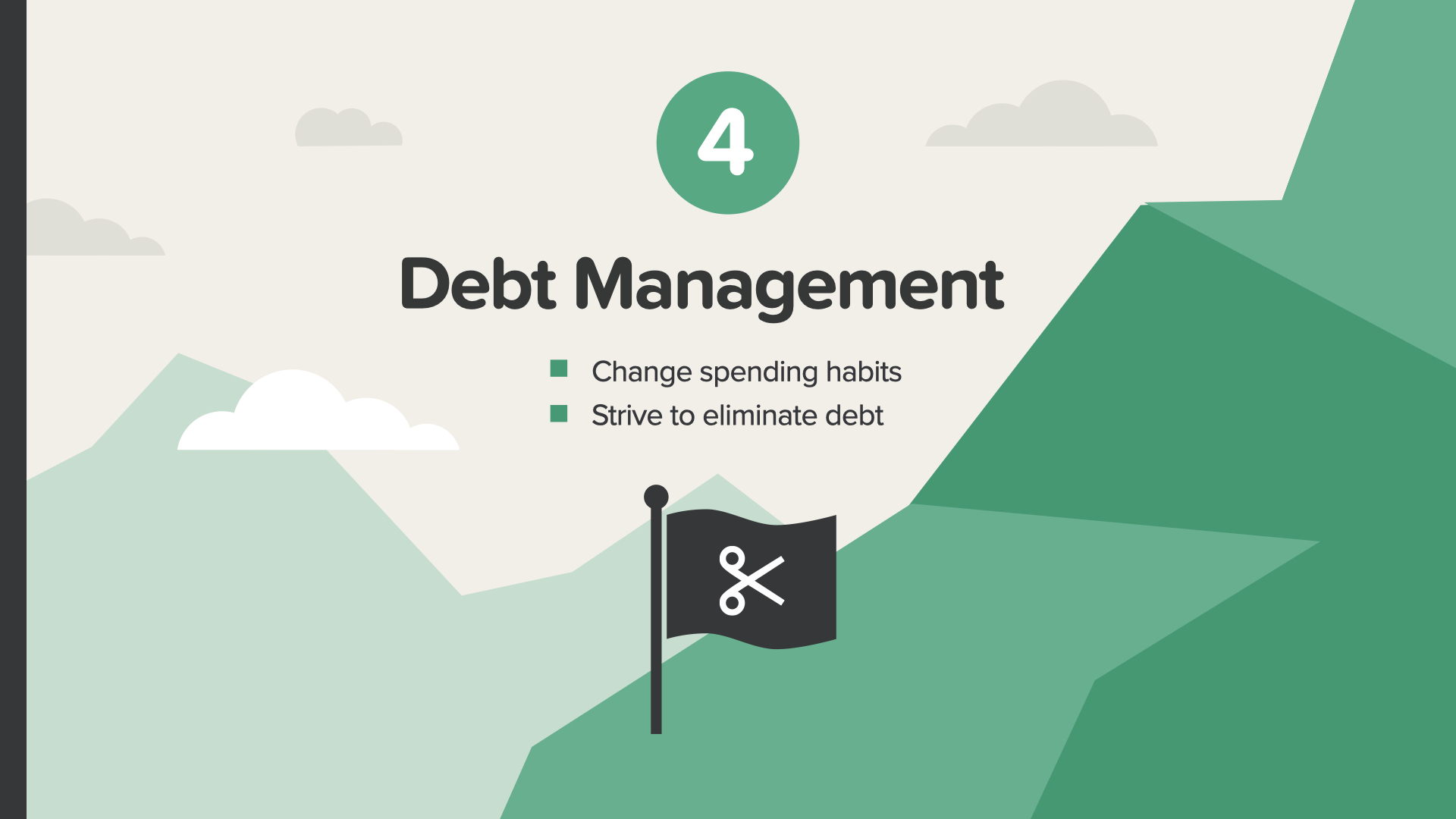Once you’ve worked with your financial professional to square away your proper protection and emergency fund, it’s time to talk about managing your debt—Milestone #4. Before you can fully enjoy financial security and independence, you’ll need to look at your spending habits and strive to reduce, and eventually eliminate, your debt.