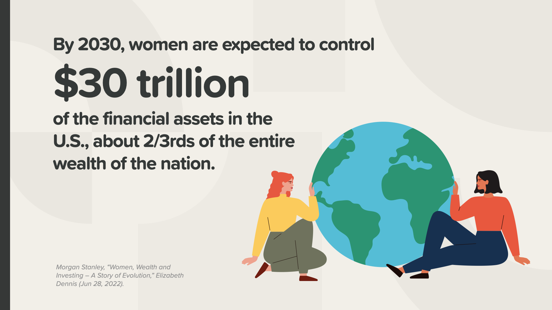 By 2030, women are expect to control $30 trillion of the financial assets in the U.S. That represents 2/3rds of the wealth in this country.