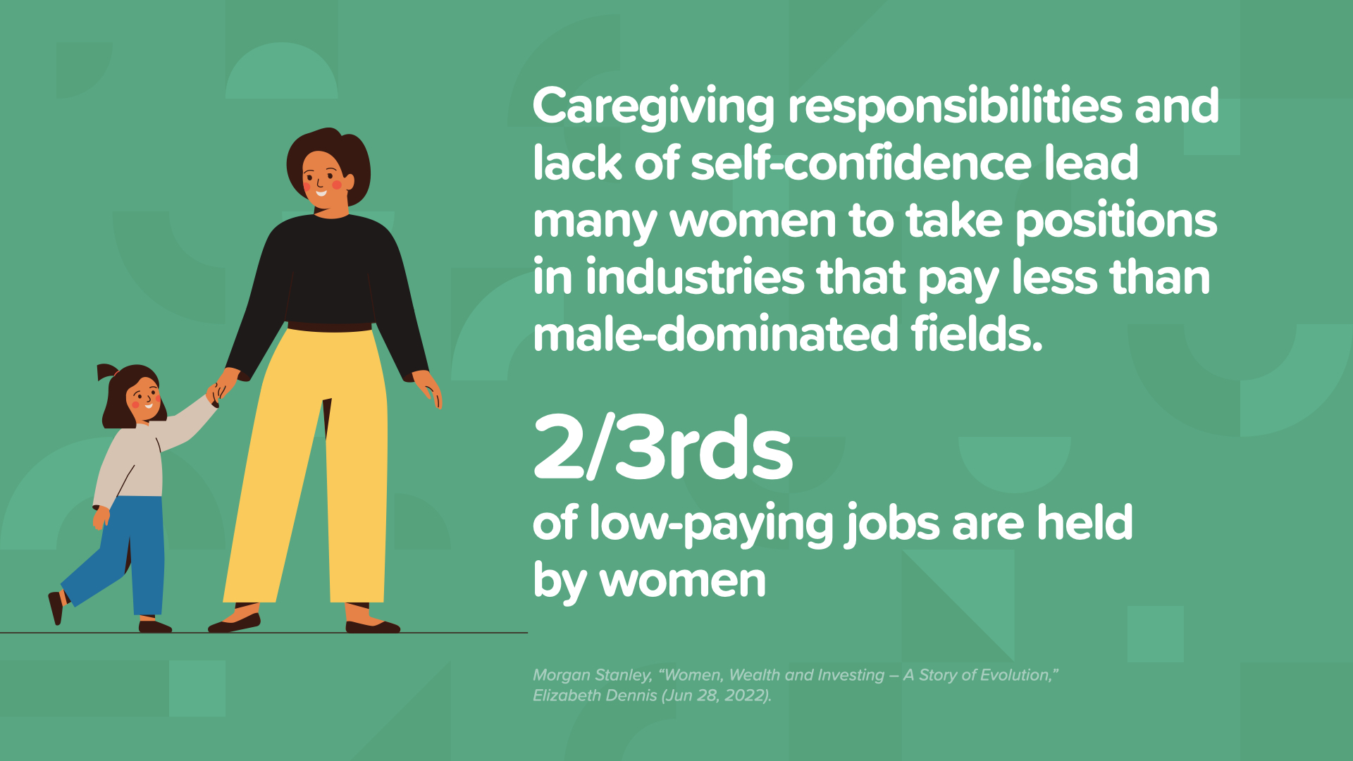 We are more likely to work minimum-wage and lower-income occupations than men. In fact, 2/3rds of low-paying jobs are held by women.