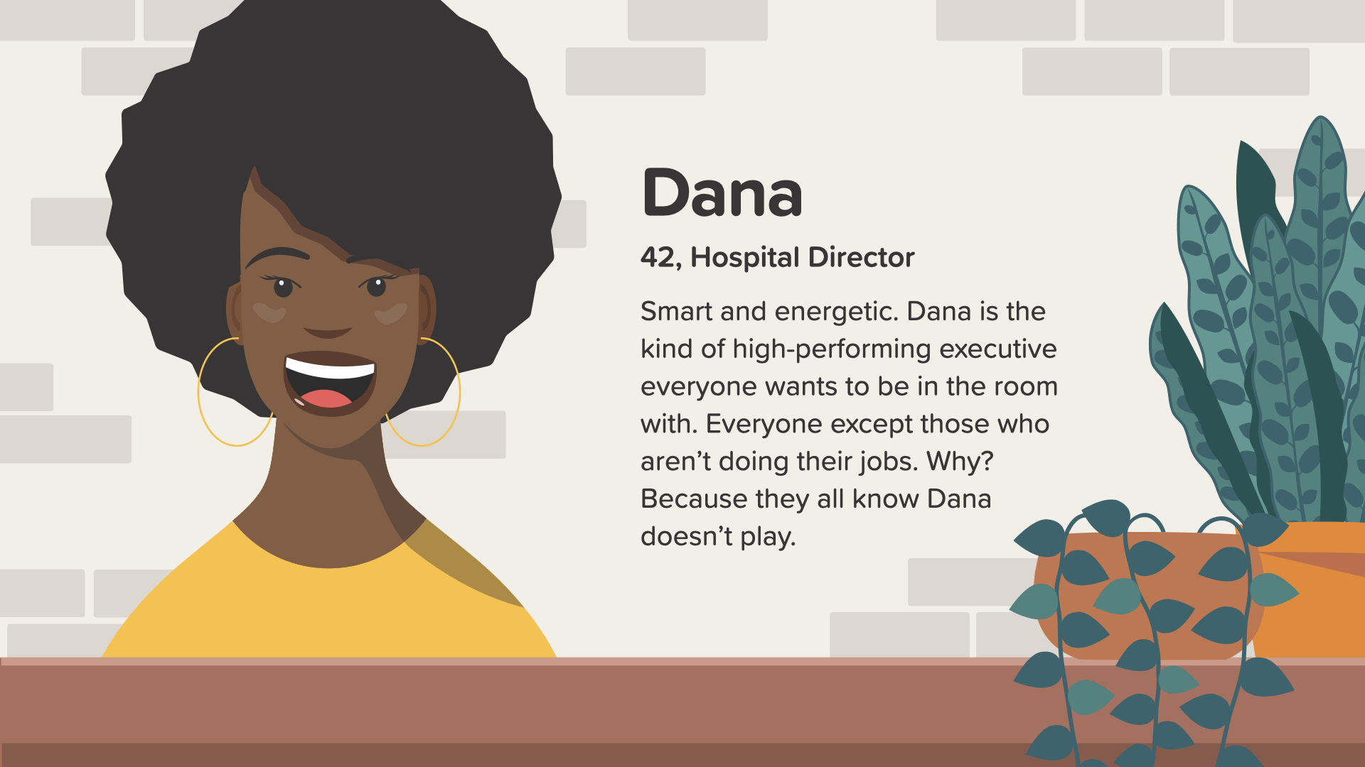 Dana is our next character. She’s a 42 year old hospital director raising 2 children. Dana is trying to figure out how to put proper protection in place for her family, plan for her retirement, and save money for her kids’ college education. It’s a financial juggling act.