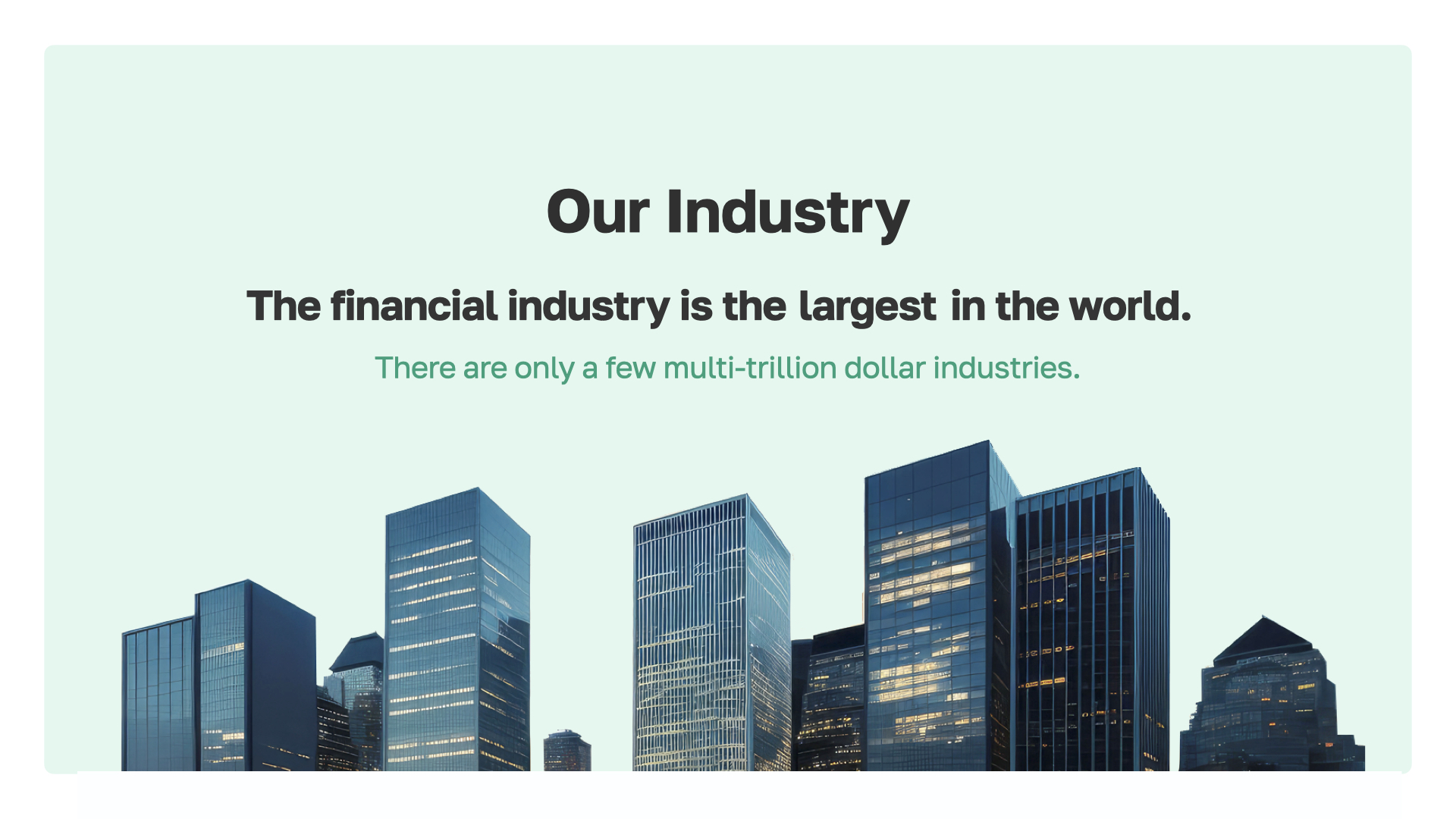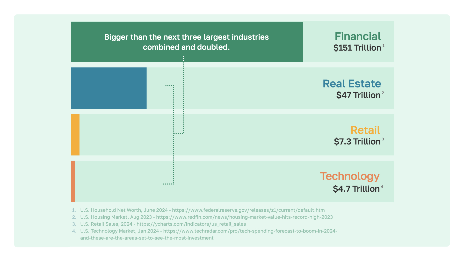 Let's discuss our industry. We highlight four of the largest sectors, each valued in the trillions—yes, with a T.