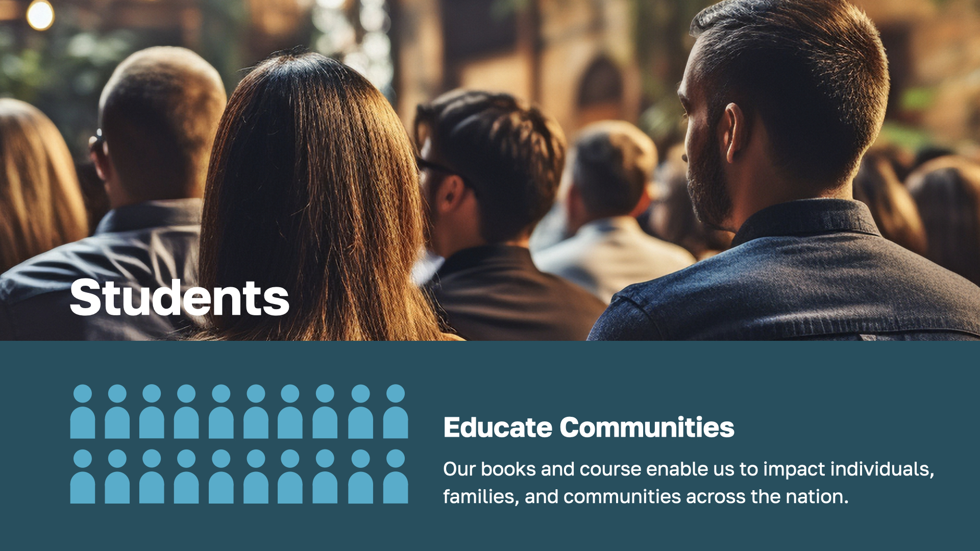 Individuals, families, and communities become students and receive a comprehensive, often life-changing, financial education.