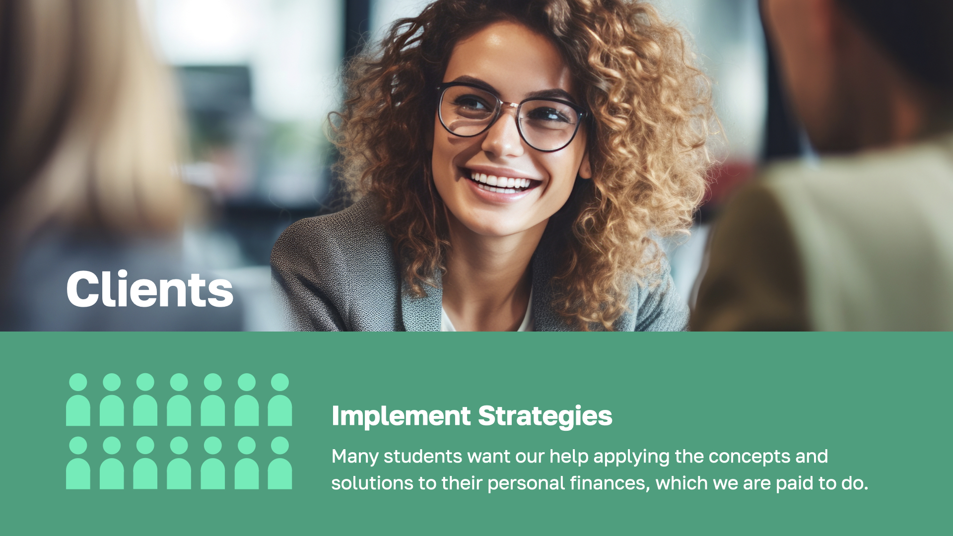 As a result, many students may seek our guidance to address their personal finances, becoming clients who apply the 7 Money Milestones and implement strategies to achieve financial security and independence.