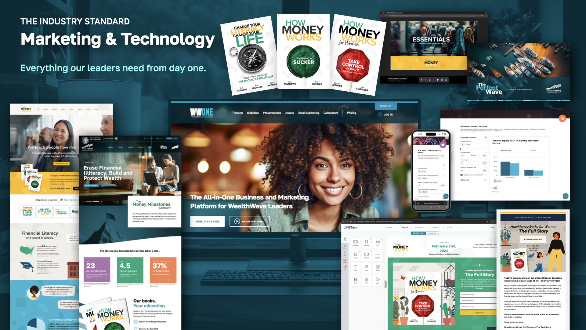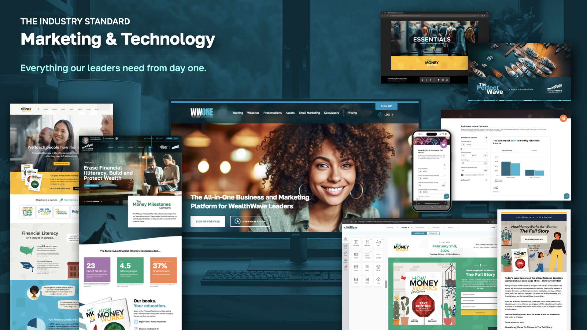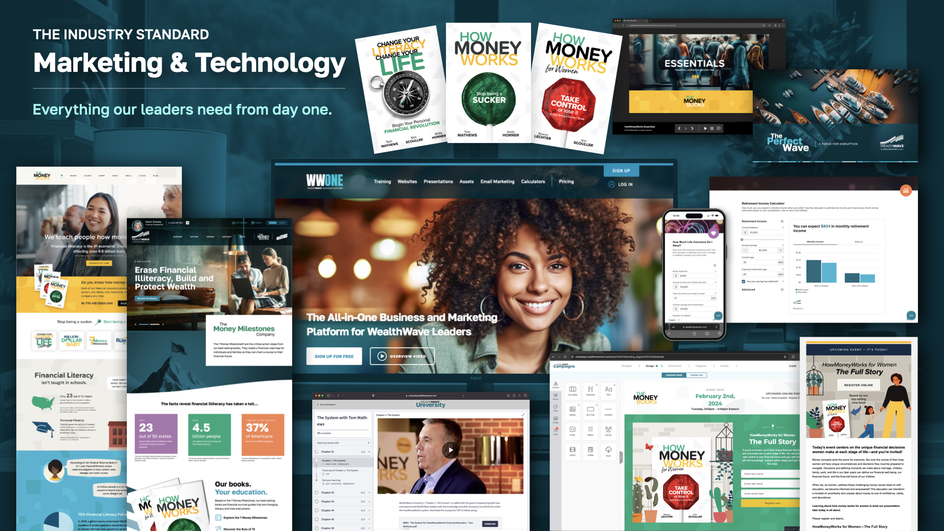 [Pause here] Everything on this slide represents a tool at your disposal for implementing our advanced marketing strategies. Our technology is specifically designed for the financial industry, providing all essential resources to help establish and grow your business. Our elegantly crafted websites, comprehensive courses, informative books, engaging videos, and insightful podcasts ensure you're equipped with the right tools for success. You'll gain the knowledge to effectively serve your clients and lead your team to success. With our personalized mentorship programs and access to industry experts, you'll have the support and guidance needed to navigate the financial industry with confidence and expertise.