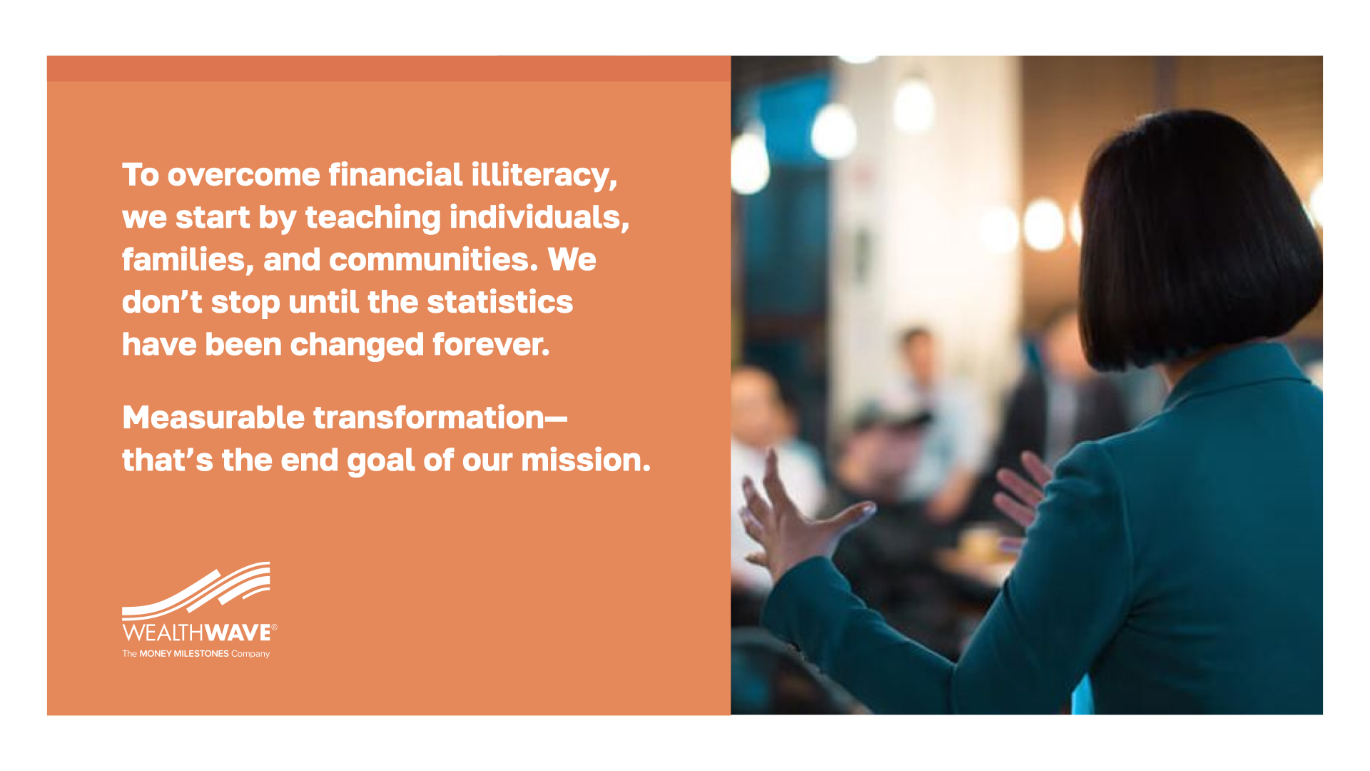 So if I’ve convinced you to adopt an entrepreneurial mindset, and to consider the largest industry in the world with the possibility of generating passive, residual, and online income…I’d like to introduce you to... WealthWave: The Money Milestones Company.