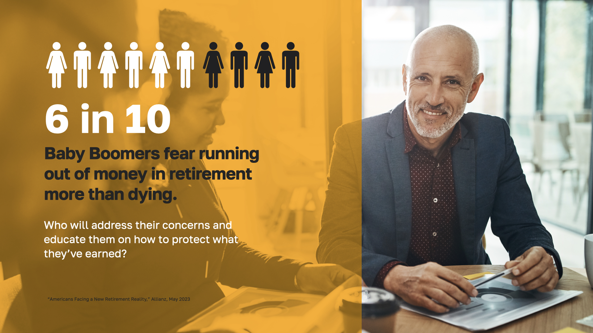 The second challenge of this wealth transfer is the staggering fact that Baby Boomers are more afraid of running out of money during retirement than dying. Having their money last as long as they do is their number one priority–and they’ll need a financial professional to help them protect what they’ve earned and pass it on to future generations.
