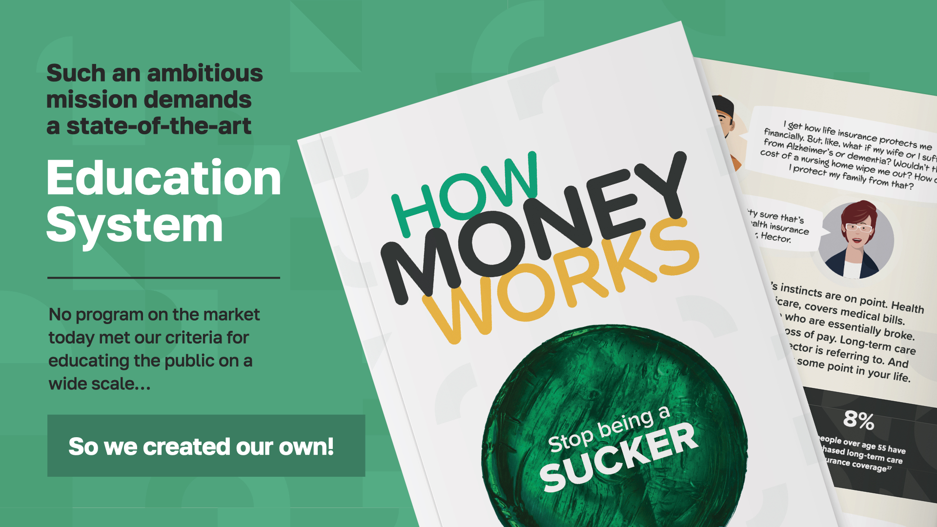 Since real financial education is not being taught in schools, we looked elsewhere—in fact, we searched everywhere for an education system that was simple, engaging, and life-changing. We came up empty-handed… so we created our own! It starts with our book—“How Money Works: Stop Being a Sucker", which has been featured on a bunch of major TV shows—ABC, NBC, CBS, Fox, CNBC, and others. The book is simple, illustrated, and an easy read. It’s not written for economists and scholars. It’s written for the rest of us—people who need a straightforward guide to take control of their personal finances. If you spend an hour reviewing it, you’ll likely know more about how money works than most people in America, and you’ll never look at money the same way again.