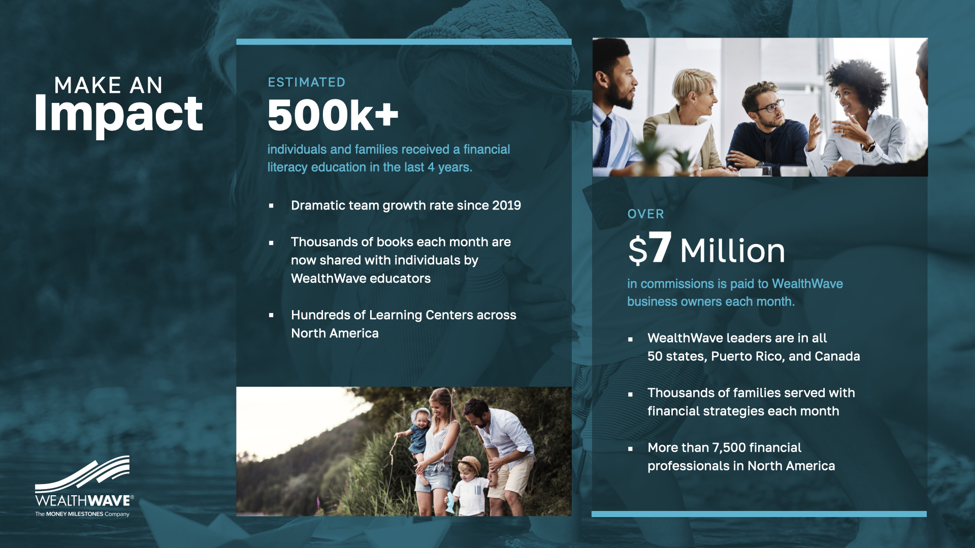 And that’s the industry where you’ll find WealthWave—a strong, visionary organization at the height of its momentum, relevance, and growth. With offices nationwide, we’ve educated hundreds of thousands of families this year and paid out millions to our leaders each month. With success like this, you can probably imagine how exciting it is to be part of WealthWave’s upward trajectory—working together and celebrating together, which includes traveling to some of the world’s most beautiful spots as a team.